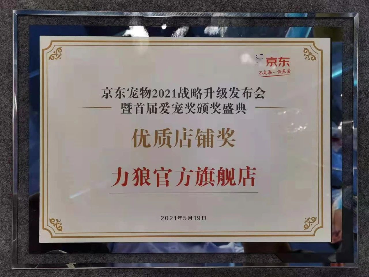 展會同期,在京東寵物2021年戰略升級發布會暨首屆“愛寵獎”頒獎盛典上,我公司力狼官方旗艦店榮獲“優質店鋪獎”,再次獲得了行業同仁的認可。